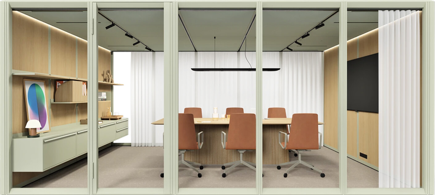 Ocenený adaptabilný systém “room-in-room”, ktorý ponúka novú úroveň flexibility a udržateľnosti v kancelárskom dizajne.